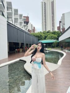 ที่หุ่นดีจัด กับเดรสสีดำรัดรูปเข้างานดีมาก อวดหุ่นเป๊ะทุกสัดส่วน เวลาหมุนตัวต้องยอมรับเลยว่า เอวน้องโคตรบาง แต่อย่างอื่นโคตรดี เจอตัวจริงคงน่าจะทำให้เรามองหันคอเคล็ดได้เลยเหมือนกันนะเราว่า งาน